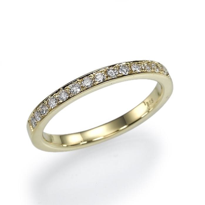 טבעת חישוק יהלומים קלאסית ועדינה- טבעת מיוחדת ויוקרתית שמתאימה כמתנה ליום נישואין, מתנה ללידה, מתנה ליום הולדת ולכל חגיגה אחרת...