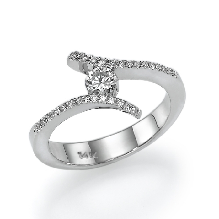 טבעת יהלומים טבעיים טוויסט איכותית ומעוצבת בשיבוץ יהלום מרכזי טבעי ועוד 30 יהלומי צד איכותיים.