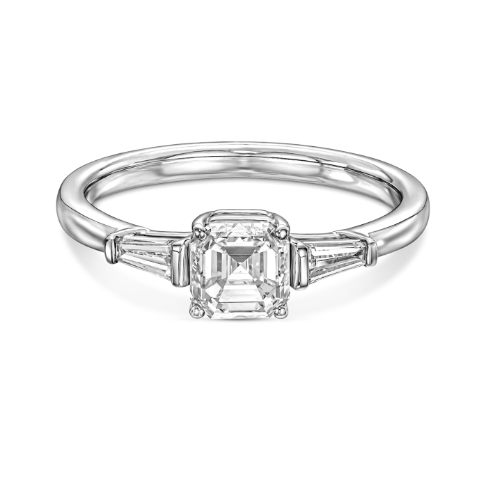 יהלום מרכזי טיבעי בחיתוך "אשר-קאט" ו- 2 יהלומים טבעיים בצדדים בחיתוך "טייפרים".